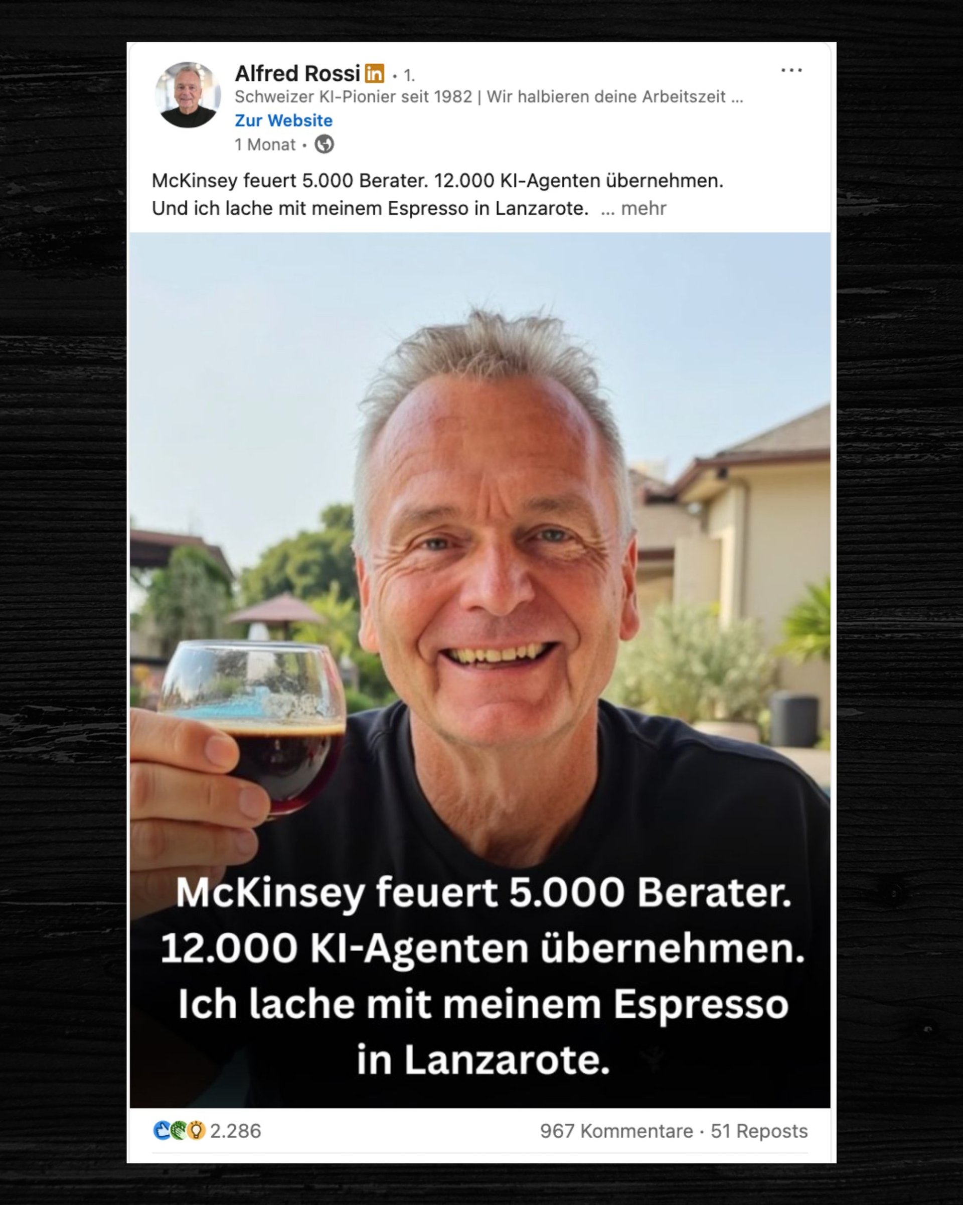 Echte LinkedIn-Beiträge unserer Kunden – geschrieben von uns, mit Reichweite, die Ergebnisse liefert.