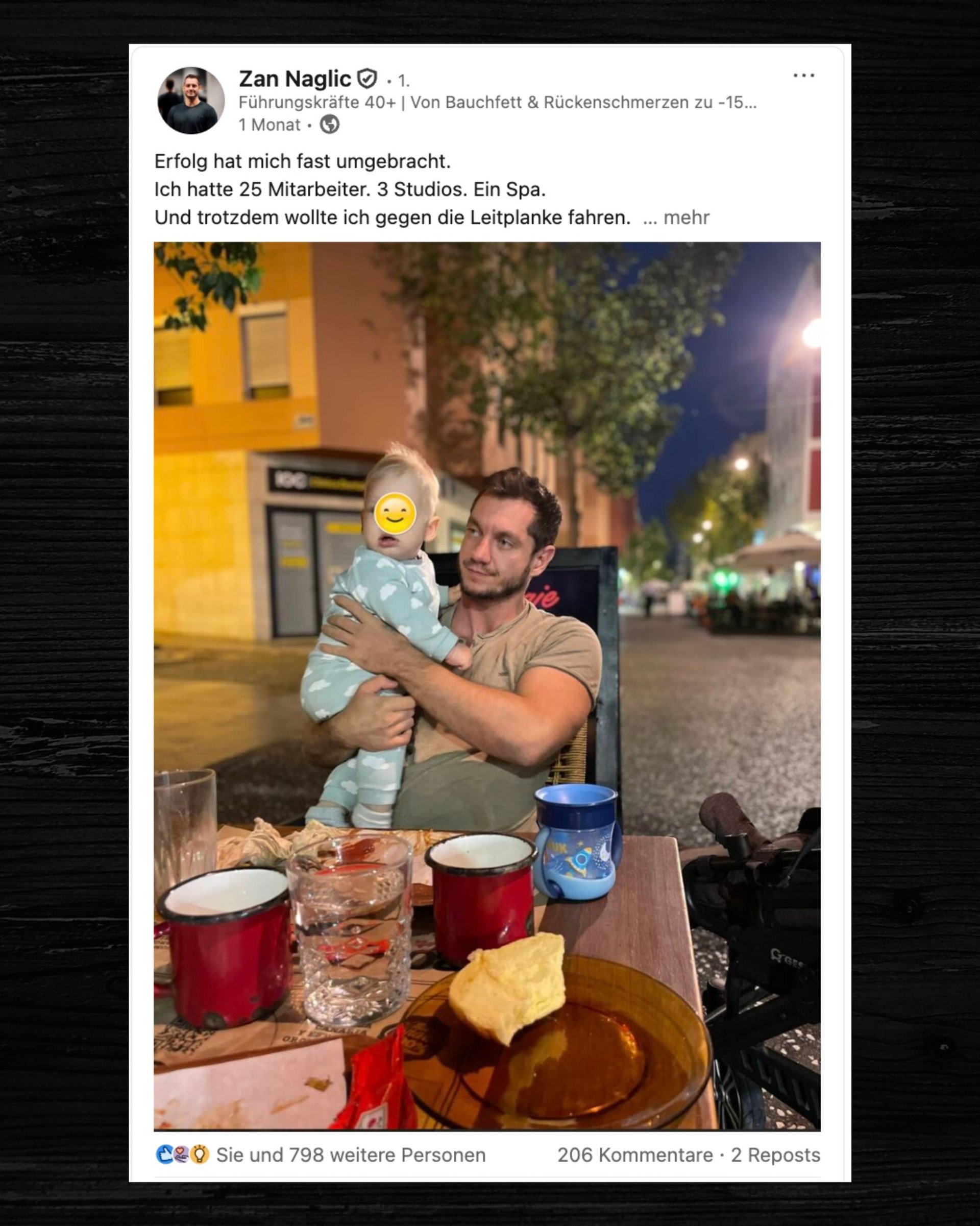 Zan war auf LinkedIn aktiv, aber ohne echten Durchbruch. Regelmäßig gepostet, aber kaum Resonanz - keine echten Anfragen und viel Zeit für Content, der verpuffte.