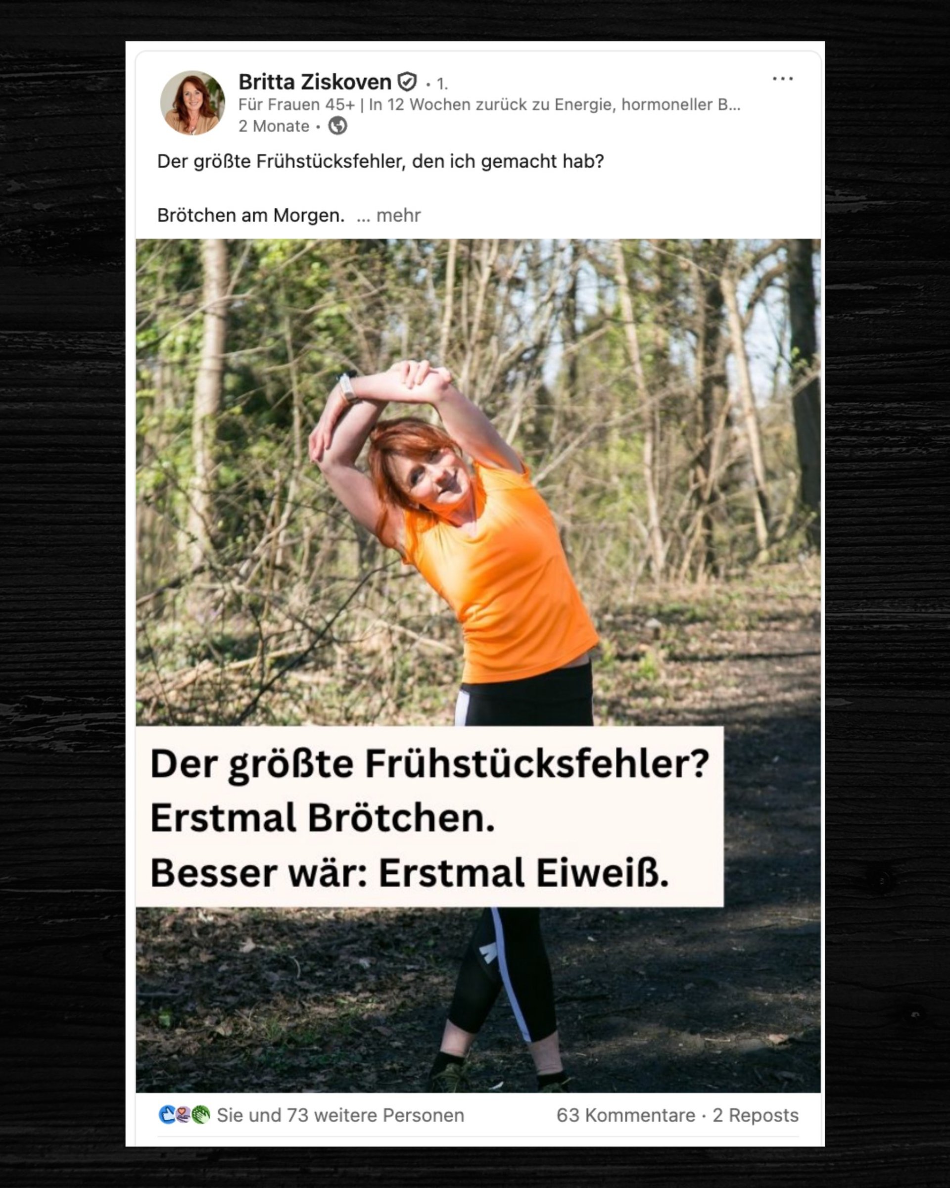 Positionierung geschärft, 3x pro Woche gepostet. Nach wenigen Wochen über 800 Reaktionen, starke Interaktion und zahlreiche qualifizierte Leads.